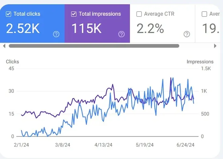 Folosind metoda de cercetare cuvinte cheie avansată am descoperit cuvinte cheie valoroase cu competiție mică. Deși un site nou, am reușit în 6 luni să creștem traficul și să îmbunătățim CTR într-un mod organic cu conținut de calitate.