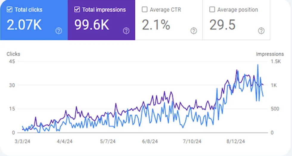 Deși un site vechi de 2 ani cu publicare consistentă de conținut nou, creșterea era aproape inexistentă.